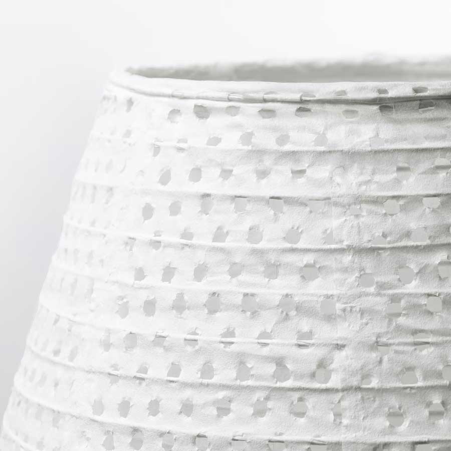شکل گرد و چاق آن با یک لایه دولایه کاغذ برنج عمق بیشتری داده می شود – لایه داخلی ساده و لایه بیرونی سوراخ شده است. این لامپ را پنهان می کند و نوری نرم و بدون تابش نور پخش می کند.