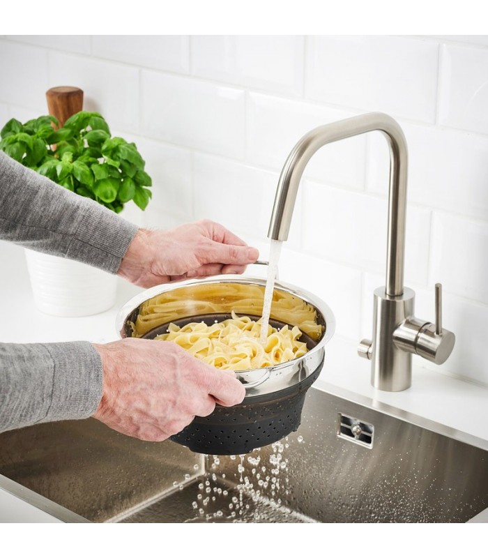 تمامی آشپزخانه ها به یک صافی نیاز دارند تا شما بتوانید کارهای شست و شوی خود را سریع تر پیش ببرید. جنس آبکش تاشو 5 لیتری ایکیا KLOCKREN از استیل مرغوب است و دارای  بدنه ای مقاوم با ابعاد استاندارد است. این آبکش خاص و شگفت انگیز دارای قابلیت تاشو است و طراحی آن به گونه ای است که می توانید به راحتی آن را در دو ارتفاع مختلف تنظیم کنید.