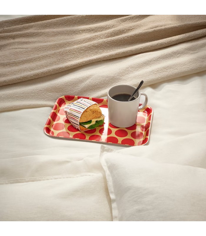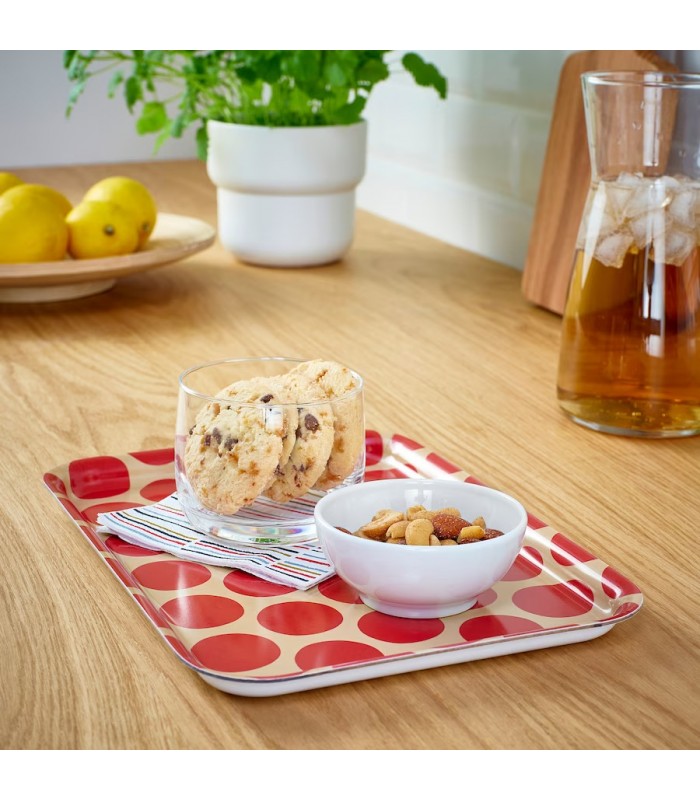 سینی خال خالی ایکیا به اندازه کافی برای یک فنجان قهوه یا چای و برخی از میان وعده ها است، اما برای آویزان کردن به دیوار یا تکیه دادن به کاشی های آشپزخانه نیز تزئینی است.